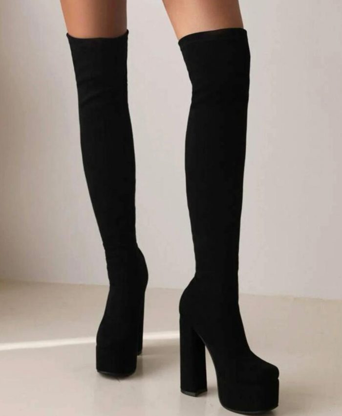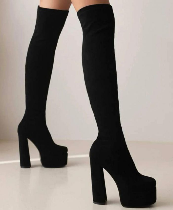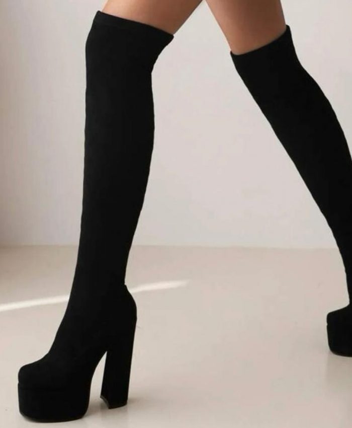 Estas botas altas son la definición de elegancia y comodidad modernas. Fabricadas con antelina suave, abrazan tus piernas con un ajuste estilo calcetín que combina perfectamente con su silueta estilizada. La punta redondeada y el tacón bloque sólido te dan un soporte estable, permitiéndote disfrutar de una altura impactante sin renunciar al confort. Con su caña alta, estas botas son ideales para crear looks sofisticados con faldas, vestidos o sobre jeans ajustados. Disponibles en tallas del 36 al 40, se ajustan maravillosamente a una variedad de estilos y preferencias. Perfectas para agregar un toque de audacia a cualquier conjunto, estas botas son una adición poderosa y chic a tu armario.