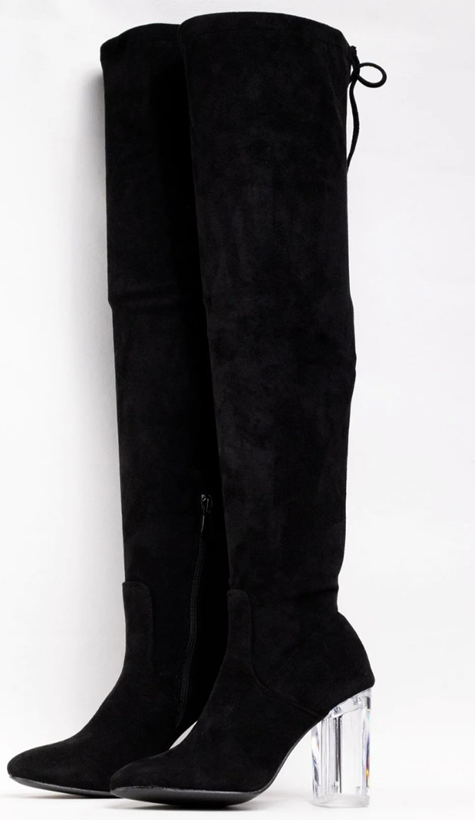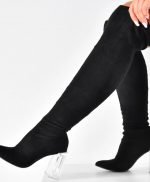 Estas botas no son solo un calzado, sino una obra de arte moderna para tus pies. Hechas de antelina suave, estas botas altas ofrecen un look elegante y contemporáneo que se ajusta como un calcetín para una silueta estilizada y cómoda. La punta fina es la quintaesencia de la sofisticación, mientras que el tacón cuadrado de metacrilato transparente añade un toque futurista y atractivo, asegurando que todas las miradas se dirijan hacia ti. Estas botas son perfectas para añadir un toque de glamour inesperado a cualquier conjunto, desde un simple vestido negro hasta tus jeans favoritos. Con su diseño vanguardista, estas botas son una declaración audaz que eleva instantáneamente cualquier atuendo.