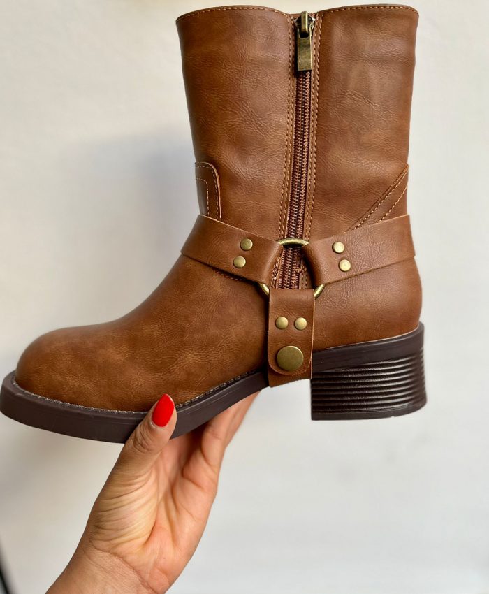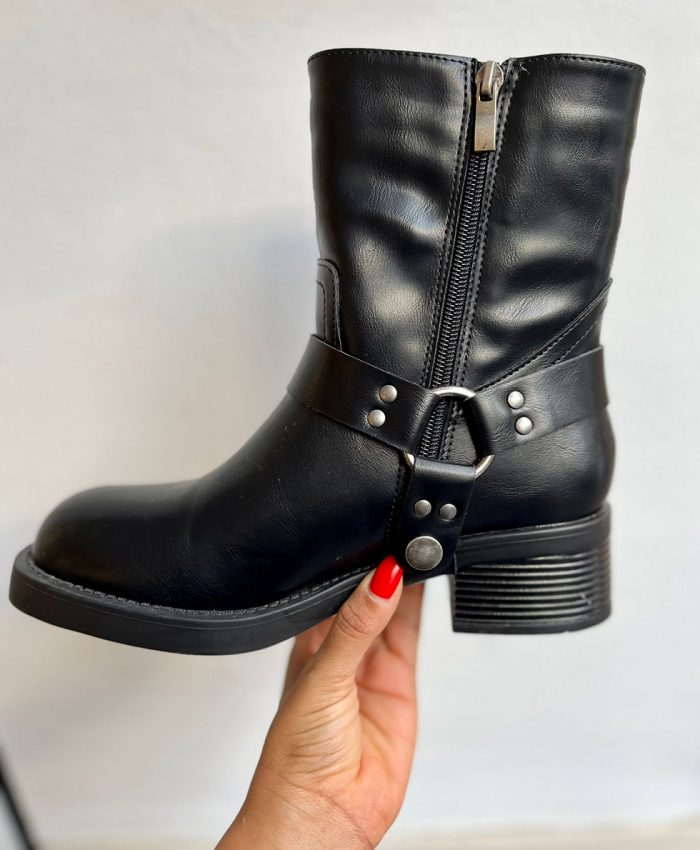 Estas botas biker son el complemento perfecto para aquellos que buscan una mezcla de comodidad y carácter en su calzado. Fabricadas con piel sintética de alta calidad, ofrecen durabilidad y un estilo atemporal. El detalle de la hebilla lateral no solo agrega una dimensión de diseño, sino que también refleja una actitud audaz. La punta redonda proporciona un toque clásico y un ajuste cómodo, ideal para largos días de uso. Con una silueta robusta y versátil, estas botas se pueden combinar fácilmente con jeans, leggings o incluso con vestidos para un look desenfadado. Disponibles en una gama de tallas que van de la 36 a la 41, estas botas biker son una elección fuerte para cualquier persona que quiera añadir un toque de dureza refinada a su estilo personal.