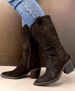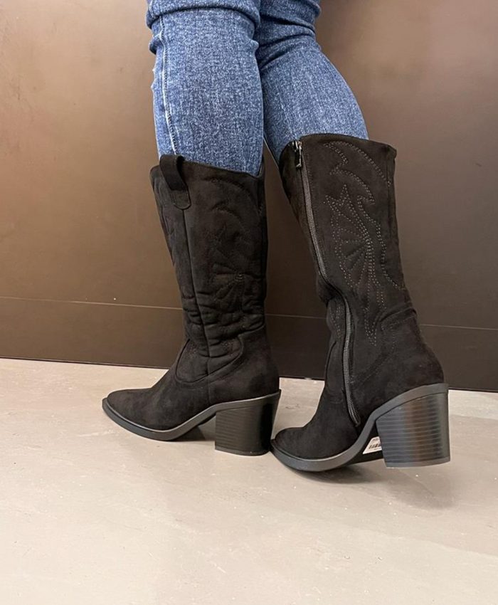 Descripción larga: Estas botas cowboy representan una mezcla magistral de tradición y moda contemporánea. Elaboradas con un tejido de antelina suave, presentan un acabado en punta y una caña media que proporciona una silueta elegante. Disponibles en negro versátil y beige neutro, en tallas que van del 36 al 41, estas botas están diseñadas para ajustarse de manera óptima a tu pie habitual. El tacón bloque de 6.5 cm te eleva con estilo sin sacrificar el confort, ideal para quienes buscan altura y estabilidad. Los detalles de contraste en el corte añaden un elemento de diseño sutil pero distintivo, mientras que la cremallera lateral y el tirador facilitan el calce. La caña de 32 cm ofrece cobertura y apoyo adicionales, haciendo de estas botas una elección perfecta tanto para un día de campo como para una noche en la ciudad. Con estas botas cowboy, el estilo clásico se encuentra con la comodidad moderna.
