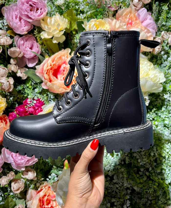 Mejora tu juego de calzado con estas botas de combate que ofrecen una combinación perfecta de estilo y resistencia. La piel sintética de calidad en opciones de color negro y beige te proporciona versatilidad para combinar con cualquier outfit. Con su diseño de caña media y suela dentada, son ideales para los días activos, ofreciendo comodidad y soporte sin renunciar al estilo. Los cordones clásicos aseguran un ajuste seguro, mientras que la silueta atemporal se mantiene fiel a la estética tradicional de las botas de combate. Estas botas son una opción estilizada para aquellos que buscan un par duradero que pueda llevarlos desde aventuras urbanas hasta excursiones al aire libre. Disponibles en tallas del 36 al 41, se adaptan a una amplia gama de gustos y preferencias.