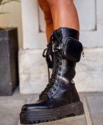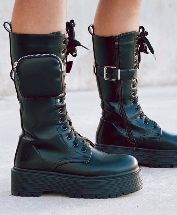 Diseñadas para hacer una declaración, estas botas militares son una adición audaz a cualquier armario. El color negro clásico y la piel sintética duradera crean un look resistente y listo para cualquier desafío. Los detalles como el bolsillo con cremallera y las hebillas ajustables no solo añaden un elemento práctico y de estilo sino que también ofrecen versatilidad para un ajuste personalizado. La suela de goma gruesa y dentada proporciona una excelente tracción y soporte, ideal para el uso diario. Estas botas son una elección estilística para aquellos que aprecian la moda con un toque de utilidad y desean llevar su estilo personal a un nuevo nivel de expresión audaz.