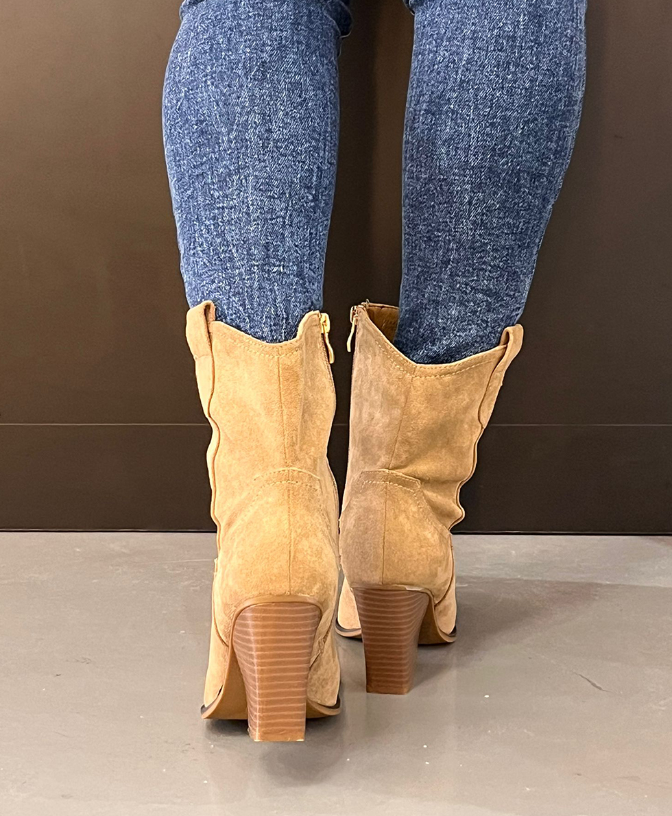Estos botines cowboy urbanos son el complemento ideal para tu guardarropa, brindando un toque de sofisticación sin esfuerzo a cualquier conjunto. Disponibles en los tonos terrosos de camel y beige, estas botas capturan la esencia del diseño clásico western con un toque moderno y chic. El acabado en punta y el tacón de bloque proporcionan una silueta elegante y un soporte estable, ideal para el ajetreo del día a día. La cremallera lateral no solo añade un detalle de diseño, sino que también permite un calce fácil y rápido. Elaborados con materiales de calidad, estos botines son una opción duradera y estilosa para cualquier ocasión. Ya sea que los combines con jeans para un look casual o con un vestido para una salida nocturna, estarás listo para conquistar el día con confianza y estilo.