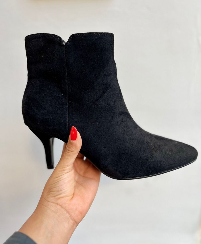 Estos botines ofrecen una combinación perfecta de estilo y practicidad. Fabricados con antelina suave, proporcionan una textura rica y un aspecto sofisticado. El tacón alto afinado es ideal para alargar tus piernas, mientras que la punta fina aporta un toque de feminidad y elegancia a tu andar. La versatilidad del color negro te permite combinar estos botines con una multitud de atuendos, desde los formales hasta los más desenfadados. Con tallas disponibles del 36 al 41, estos botines son una opción cómoda para el uso diario o para esas noches especiales en la ciudad. Su diseño atemporal se asegurará de que permanezcan como una pieza favorita en tu colección durante años.