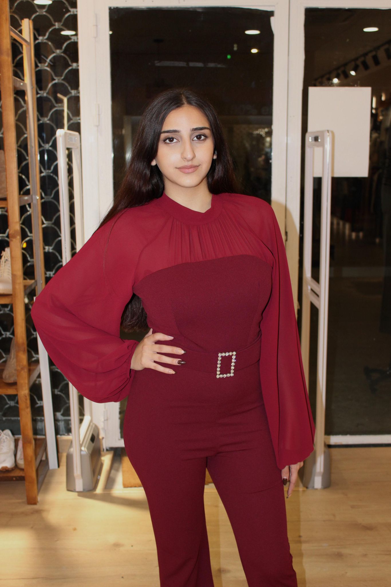 Un look sofisticado que combina fuerza y feminidad. Este conjunto en tono borgoña destaca por su diseño de manga abullonada y cintura ceñida con detalle de hebilla, que realza la silueta con sutileza. Perfecto para eventos formales o cenas elegantes, este outfit transmite seguridad, elegancia y un estilo clásico con un toque moderno.
