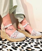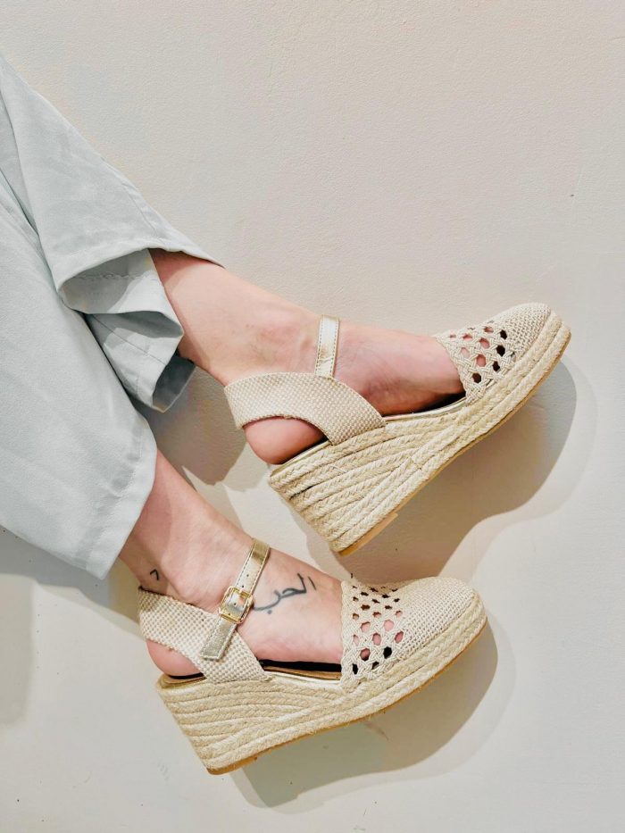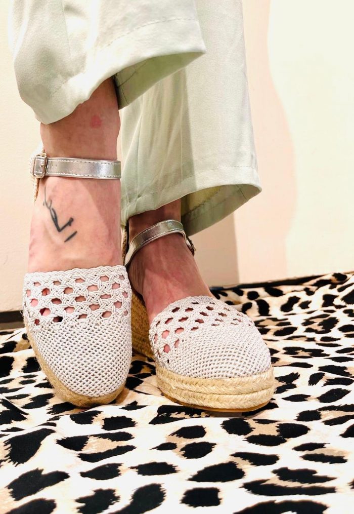 Esparto con trenzado de alta calidad que proporciona durabilidad y estilo diseño de punta cerrada con elegante trenzado en forma de estrella, ofreciendo un toque artesanal único. Hebilla dorada o plateada ajustable para un ajuste personalizado y seguro. Suela cómoda y resistente ideal para un uso diario. Añade un toque de elegancia a tu oufit con esta hermosa sandalia . Perfecta para combinar con tus prendas veraniegas o casuales , esta sandalia destaca por su diseño trenzado detallado con toques sutiles de brillo y confort.