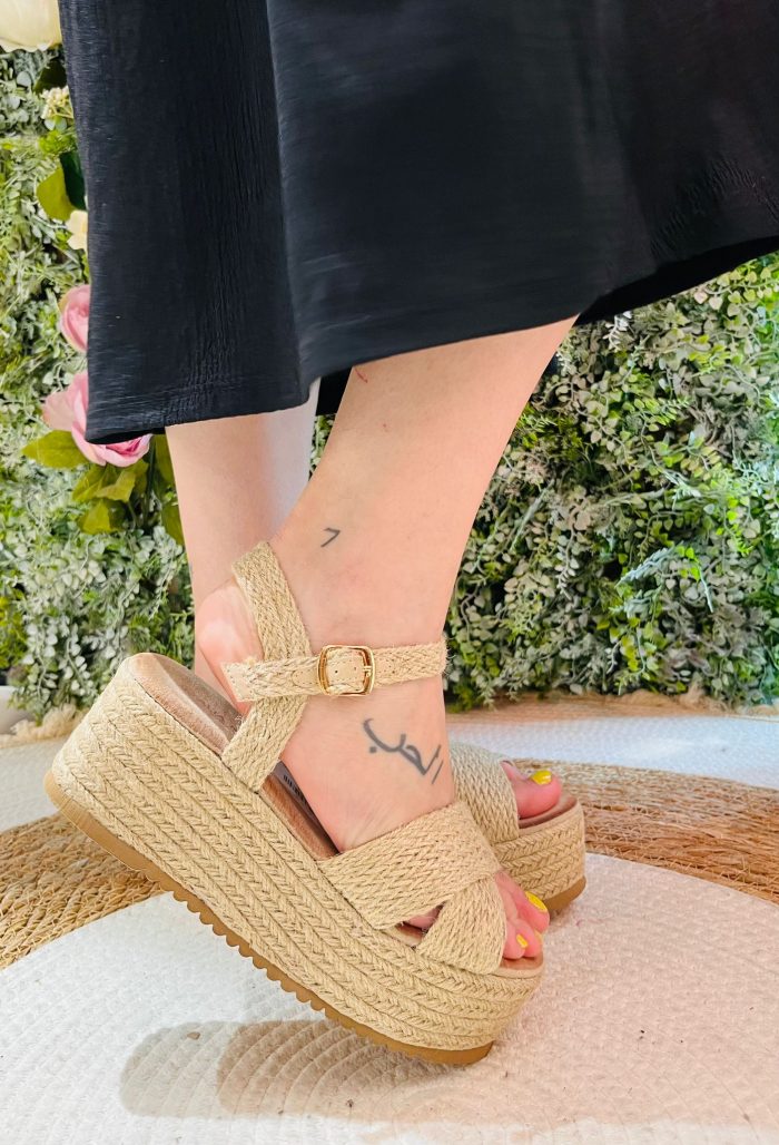 Descripción Sandalias de esparto con cu;a mediana y plataforma son la combinación perfecta cómoda y estilosa . Diseñadas con tiras anchas cruzadas , no solo aseguran un buen soporte para el pie sino que también aportan un diseño atractivo y contemporáneo. La hebilla ajustable permite personalizar el ajuste garantizado que las sandalias que se adapten perfectamente a tu pie. Estas sandalias son versátiles y se pueden combinar fácilmente con una variedad de oufits desde vestidos y faldas hasta pantalones cortos y jeans .Ya sea para una salida casual o un evento mas formal, estas sandalias de esparto con cu;a mediana serán tu accesorio favorito para lucir a la moda y con total comodidad. No te pierdas la oportunidad de a;adir estas sandalias de esparto a tu colección de calzado y disfruta de su estilo y confort en cualquier ocasión.
