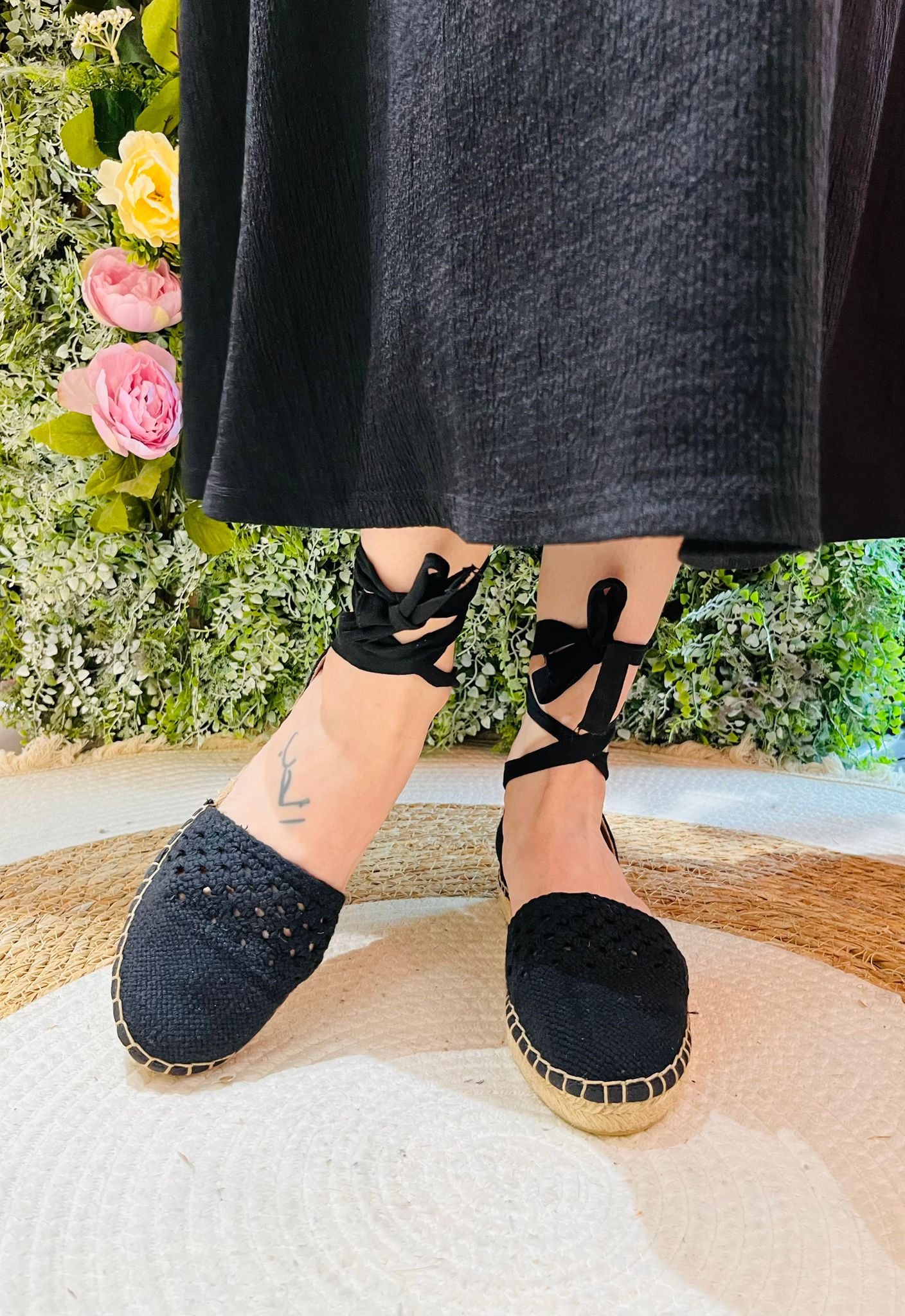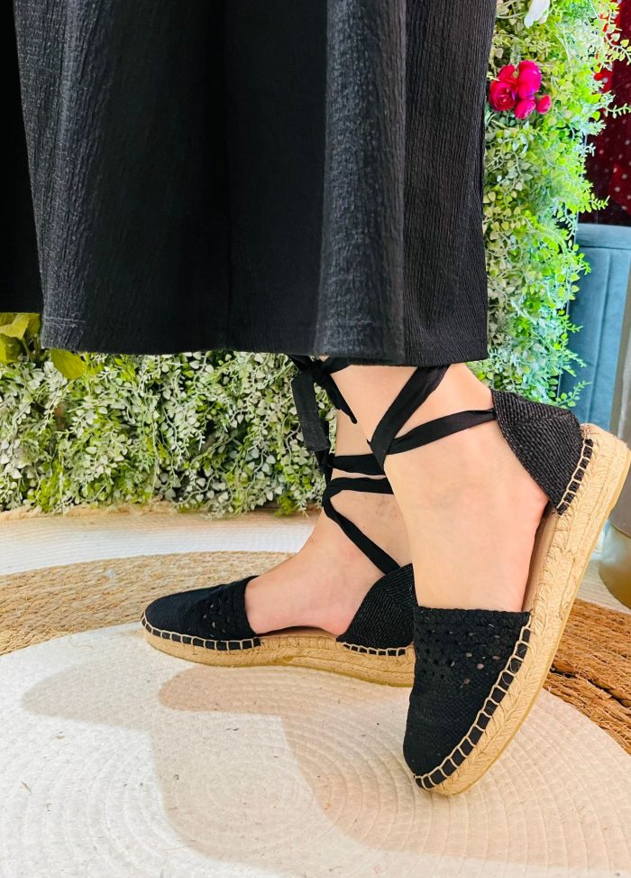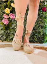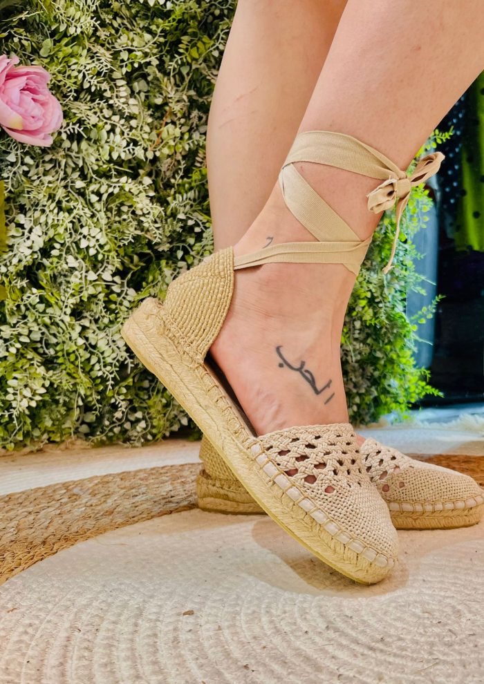 Sandalias de esparto bajas con lazada y diseño calado , son una elección perfecta para un look veraniego y chic .Su estilo único y artesanal las convierte en un complemento distintivo, que añade un toque bohemio y elegante a cualquier conjunto. Las lazadas permiten atarla a la pierna, proporcionando un ajuste seguro y cómodo, además de añadir un detalle decorativo que destaca. El diseño calado no solo es estéticamente atractivo , sino que también ofrece una mayor transpirabilidad .