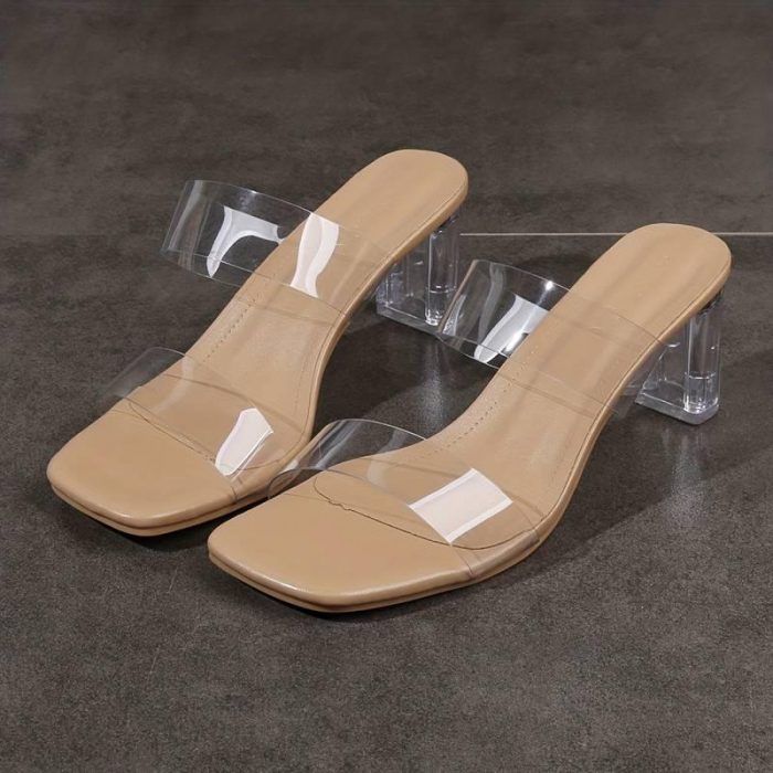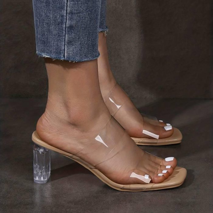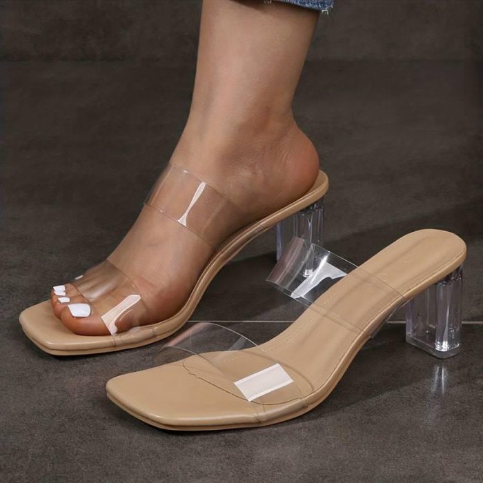 Home Calzado Sandalias Sandalias Tacon Transparente De Punta Cuadrada
