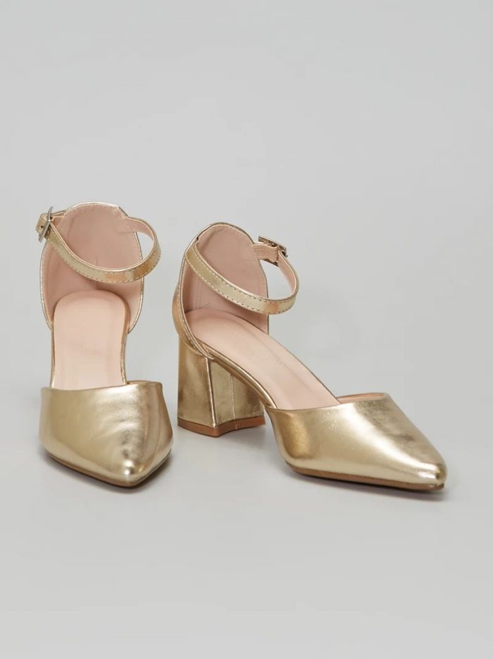 Tacón Dorado con Pico: Con un resplandor cálido y deslumbrante, el tacón dorado se adapta perfectamente a celebraciones y momentos especiales. La forma en pico no solo estiliza la pierna, sino que también da un aire moderno y único a tu look.