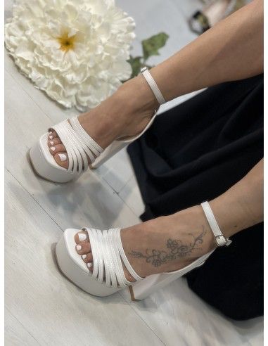 El tacón con tiras redondas en color blanco es una pieza única que combina elegancia moderna con un toque original. Su diseño minimalista, con tiras de forma redondeada que abrazan delicadamente el pie, crea una silueta estilizada y femenina, perfecta para realzar cualquier look.