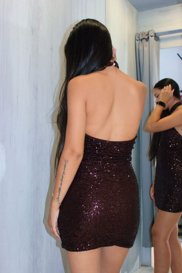 💫 *Vestido Corto de Lentejuelas – Cuello Halter/Cruzado* 💫