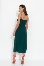 Este sofisticado vestido midi está confeccionado en crepé, un tejido elegante con un tacto suave y caída fluida que aporta un aire refinado. Los tirantes delicados añaden un toque femenino y versátil, mientras que su sistema ajustable permite adaptar el escote según la ocasión. La cremallera trasera asegura un ajuste perfecto y facilita su colocación. Con un largo midi que llega hasta la pantorrilla, esta pieza es ideal para eventos formales, cócteles, bodas o cenas de gala, ofreciendo un equilibrio perfecto entre elegancia y comodidad. Su diseño favorecedor realza la silueta sin sacrificar el movimiento, convirtiéndolo en un indispensable para looks sofisticados.