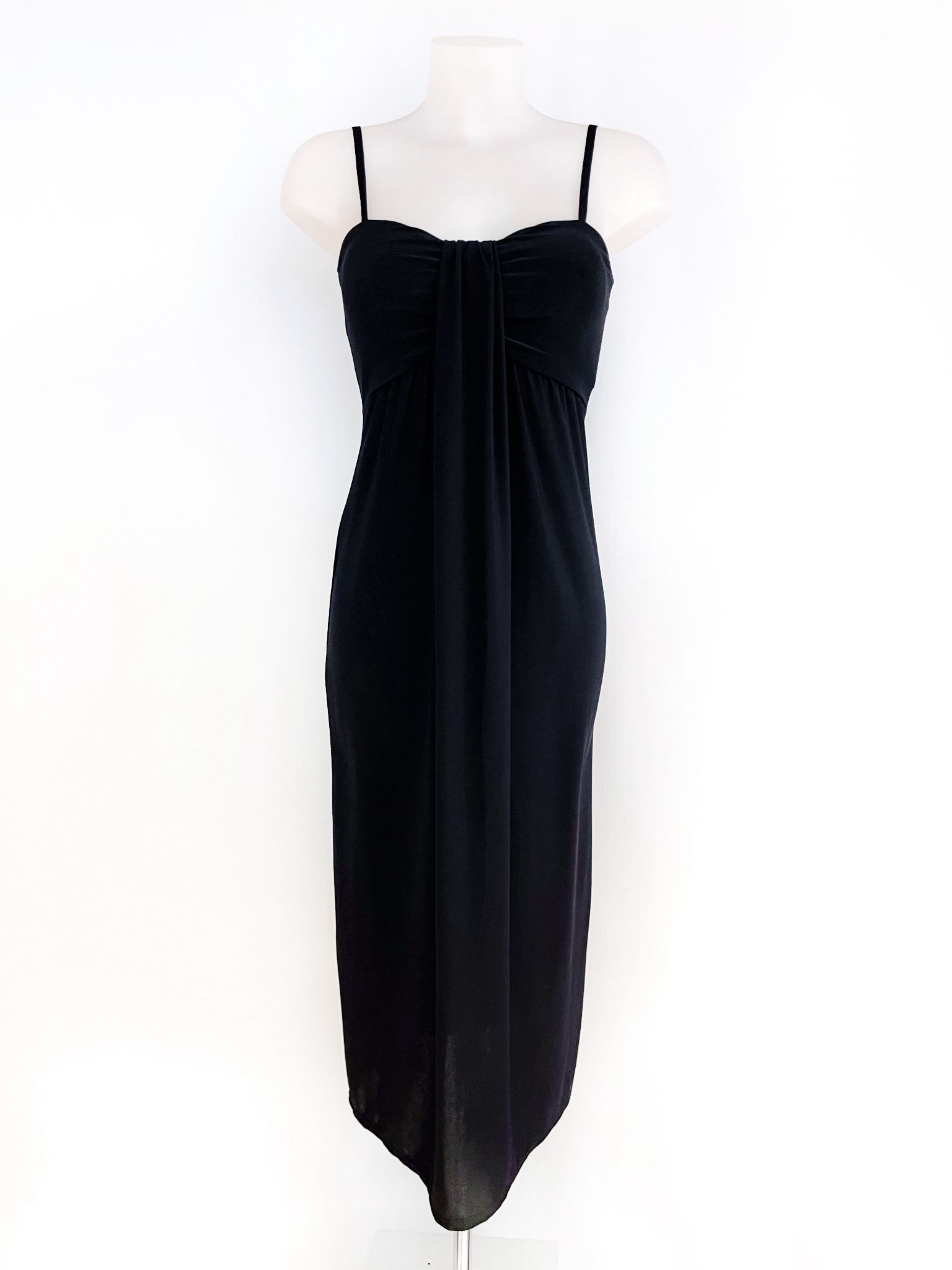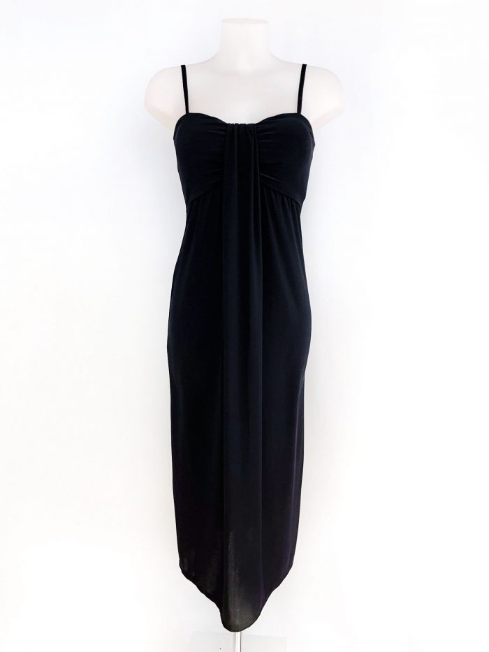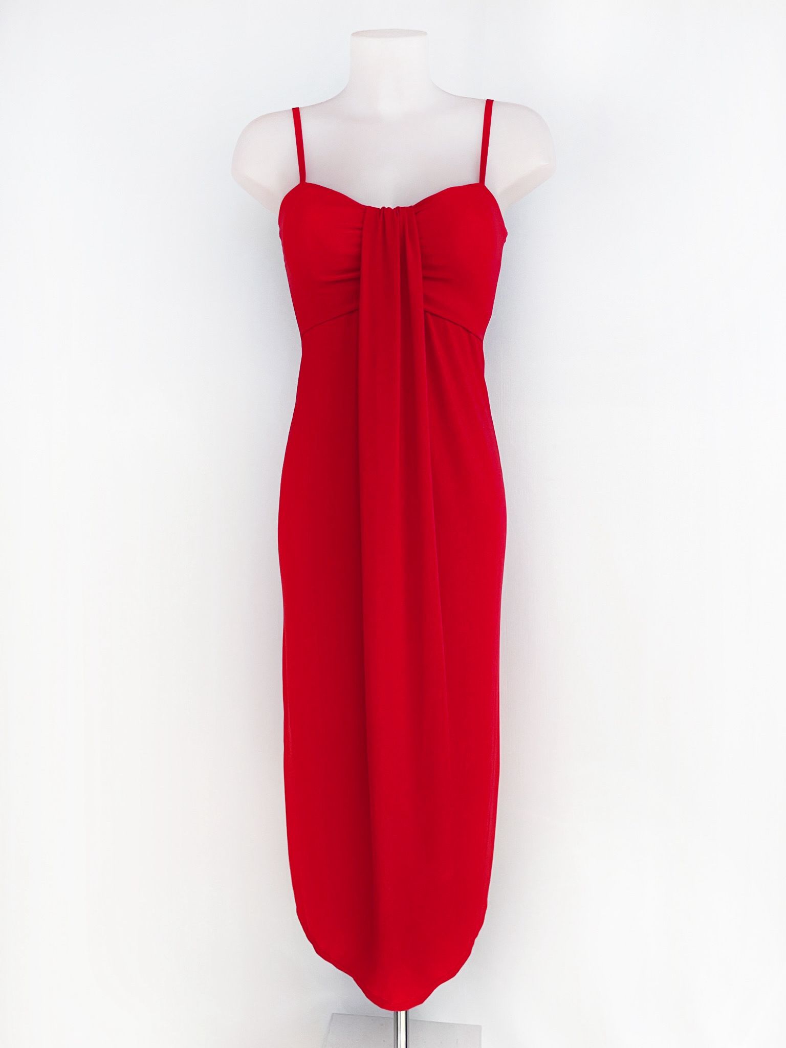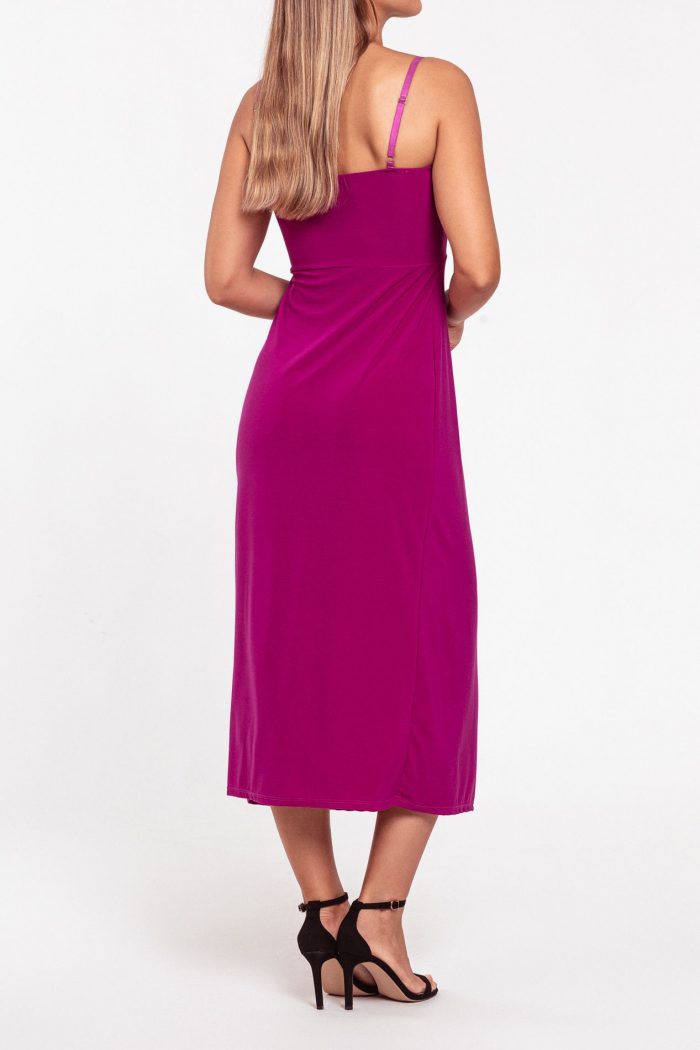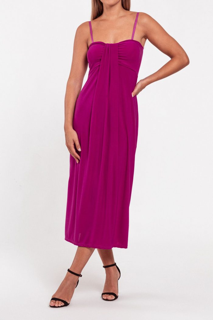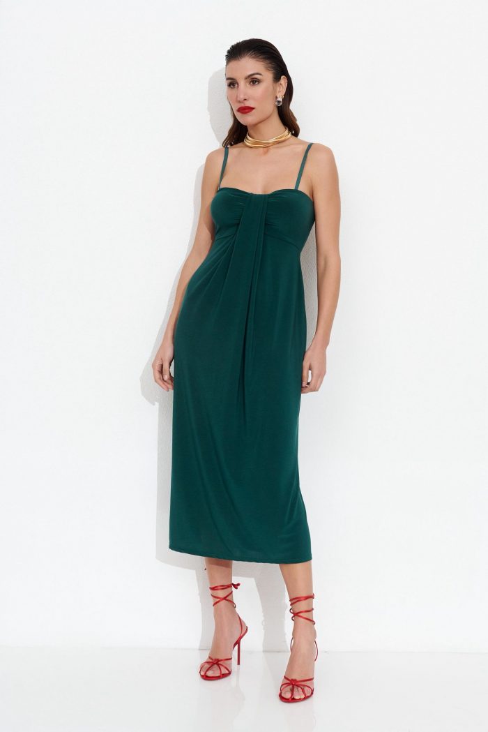 Vestido midi de crepé con tirantes , perfecto para eventos. Cuenta con cremallera en la espalda y tirantes ajustables para un ajuste personalizado.