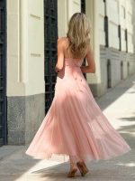 El corte largo y fluido añade un toque elegante y femenino, ideal para ocasiones especiales como bodas, fiestas, cenas o sesiones de fotos. Es un vestido que combina sencillez y encanto con gran delicadeza.