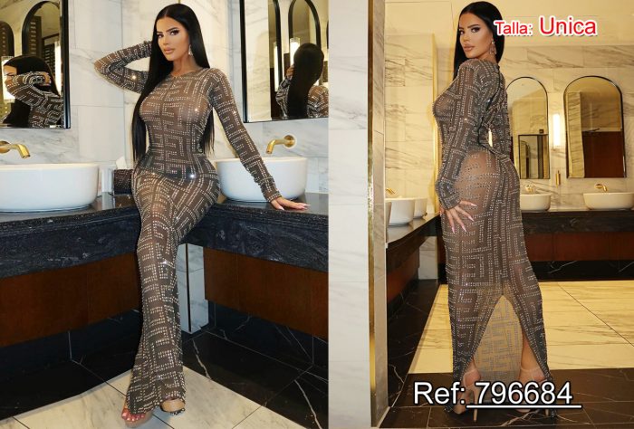 Diseño Único: Este vestido presenta un diseño elegante y un toque de transparencia. 🌟 Su textura brillante añade un aire sofisticado a tu look. Perfecto para ocasiones especiales.