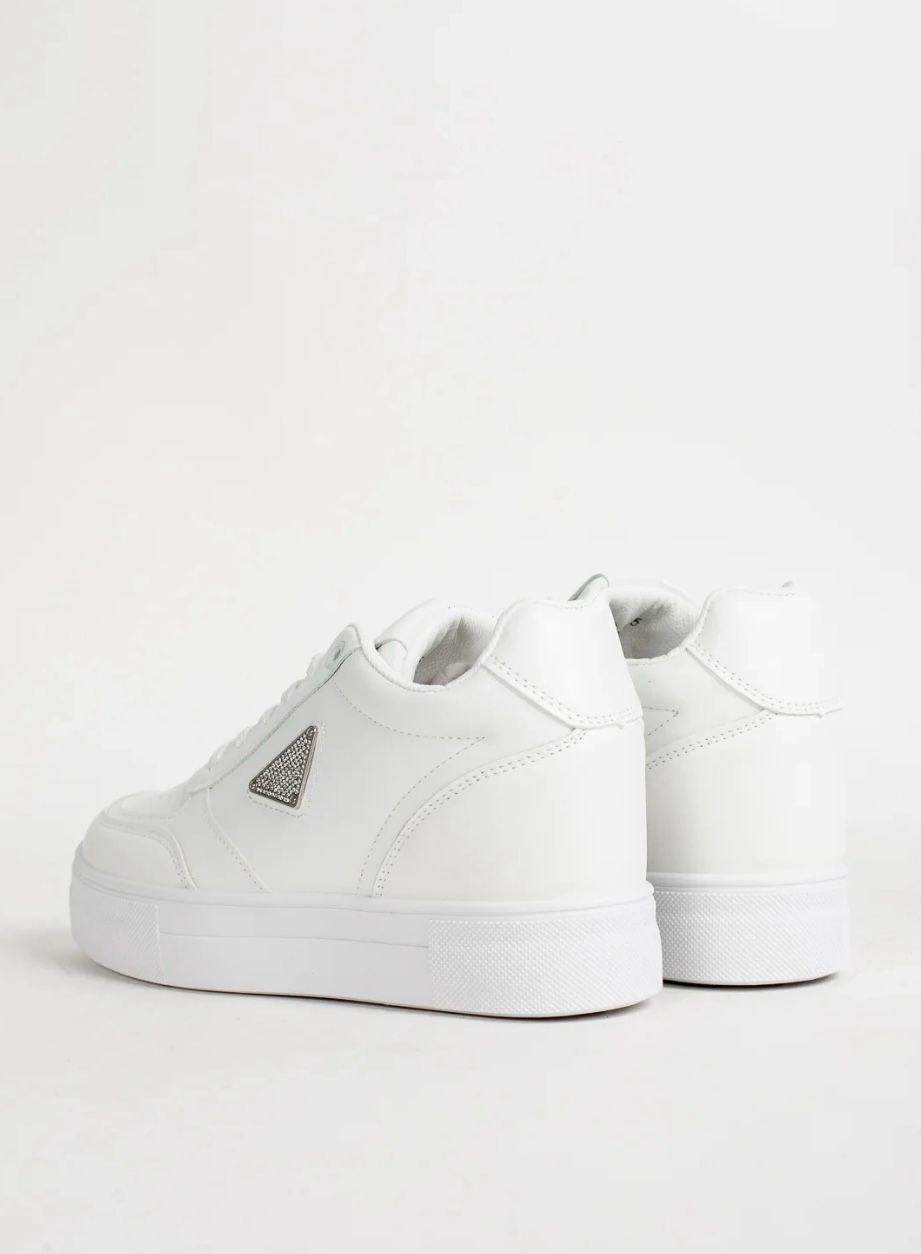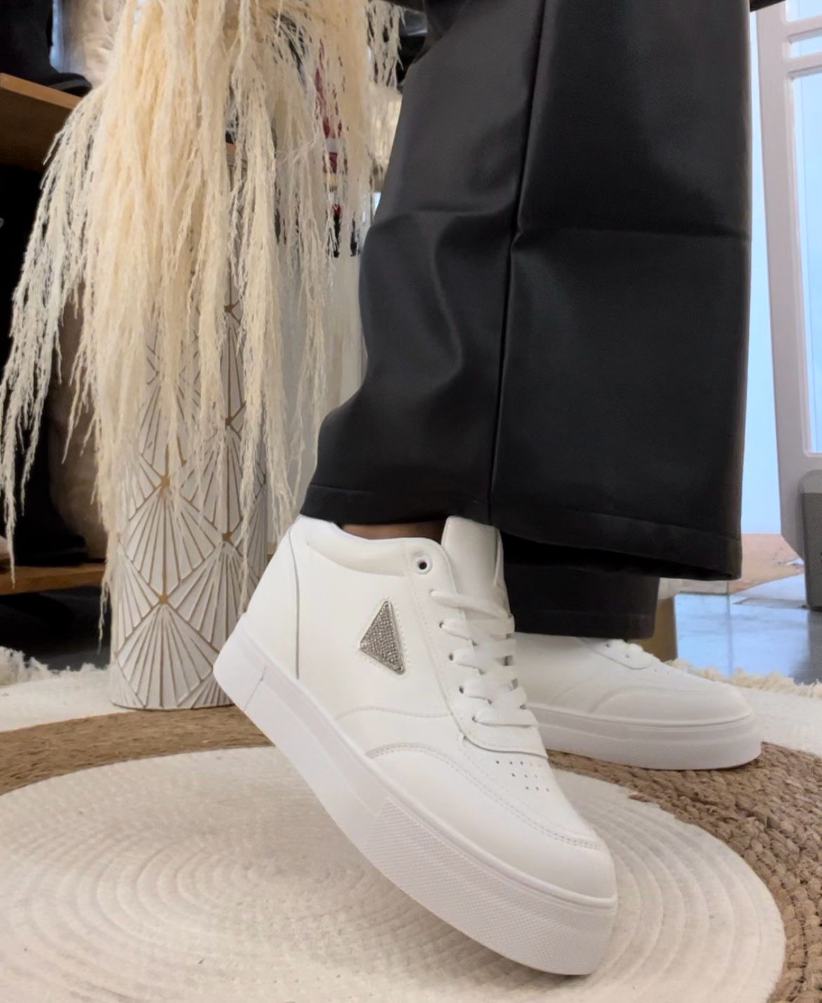 Presentamos las Zapatillas Bambas RP ADYT, un elegante calzado deportivo de cuero blanco con un distintivo triángulo en el lateral. Estas zapatillas destacan por su diseño moderno y sofisticado, perfectas para lucir en cualquier ocasión. Además, cuentan con piedrecitas de strass que añaden un toque de brillo y estilo. Su cuña interior proporciona comodidad y soporte adicional, convirtiéndolas en la elección ideal para aquellos que buscan un calzado que combine moda y confort.