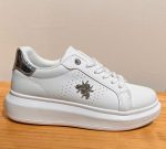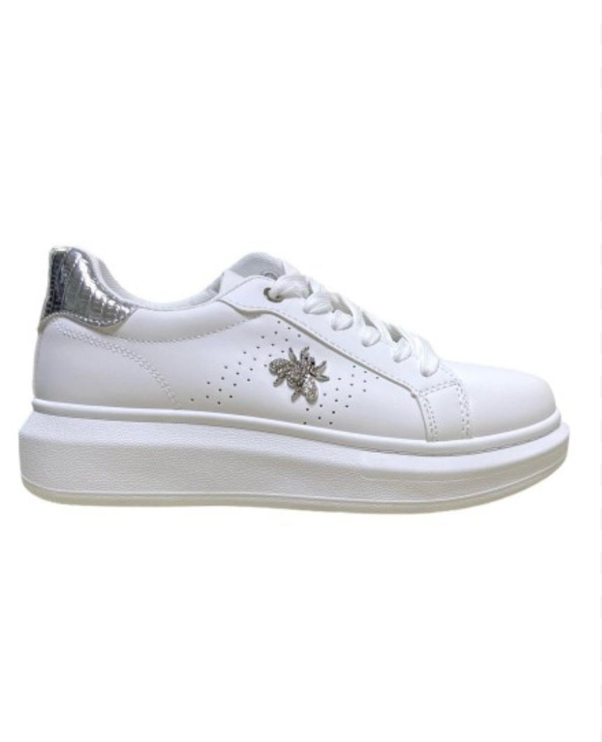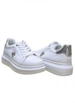 Estas zapatillas blancas  con detalles plateados son perfectas para aquellos que buscan un estilo elegante y moderno. Con su diseño de plataforma, las Zapatillas Bambas RP G te brindarán comodidad y estilo a la vez, de alta calidad y los detalles plateados le dan un toque sofisticado a este calzado, convirtiéndolo en una opción versátil para cualquier ocasión. ¡No te pierdas la oportunidad de lucir a la moda con estas zapatillas de cuero blanco con detalles plateados!