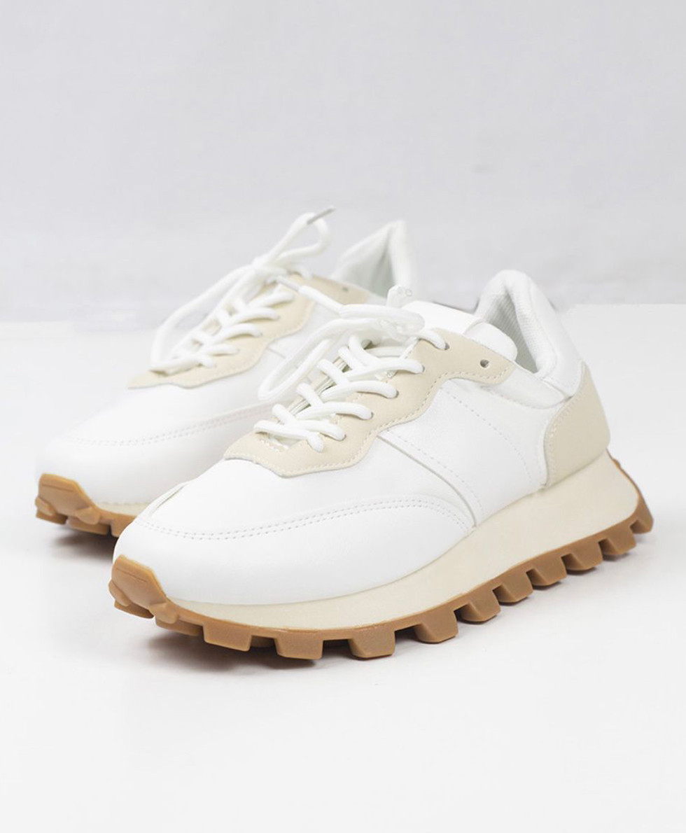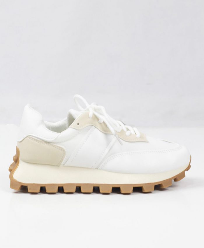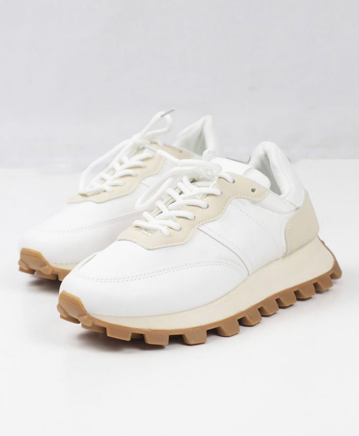 Estas zapatillas deportivas son la fusión perfecta de moda y funcionalidad. El diseño en tonos blancos y beige es tan versátil como moderno, ofreciendo la facilidad de combinarlas con cualquier paleta de colores. Hechas de piel sintética de alta calidad y con una puntera de nailon impermeable, estas zapatillas están listas para enfrentar los elementos manteniendo tus pies secos y cómodos. La plataforma de 4.5 cm te da un pequeño impulso sin sacrificar la estabilidad, mientras que la plantilla acolchada garantiza que tus pasos sean siempre confortables. Además, su construcción ligera significa que puedes llevarlas durante todo el día sin esfuerzo. Escoge tu talla habitual y disfruta del equilibrio ideal entre estilo y comodidad. Disponibles en tallas 36 a 41.