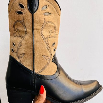 Botas Cowboy Bicolor con Antelina y Polipiel