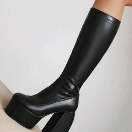 Botas Altas de Polipiel con Tacón y Cremallera Lateral 35,99 € IVA incluido