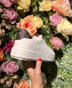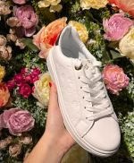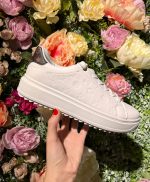 Zapatillas de moda blanca con detalles de diseñador, perfectas para añadir un toque chic a cualquier atuendo casual.